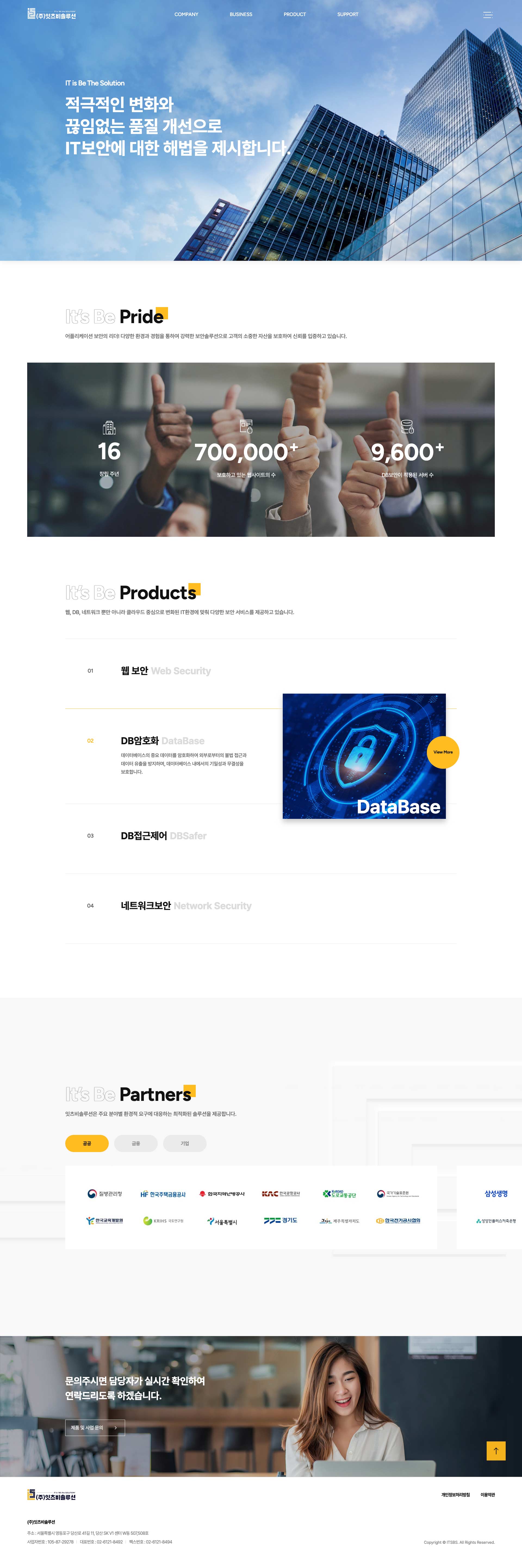 잇츠비솔루션 홈페이지 디자인에서는 노란색 탭버튼 요소에 밝은 회색 배경을 깔아주어 눈의 부담을 줄여주고 있습니다.
